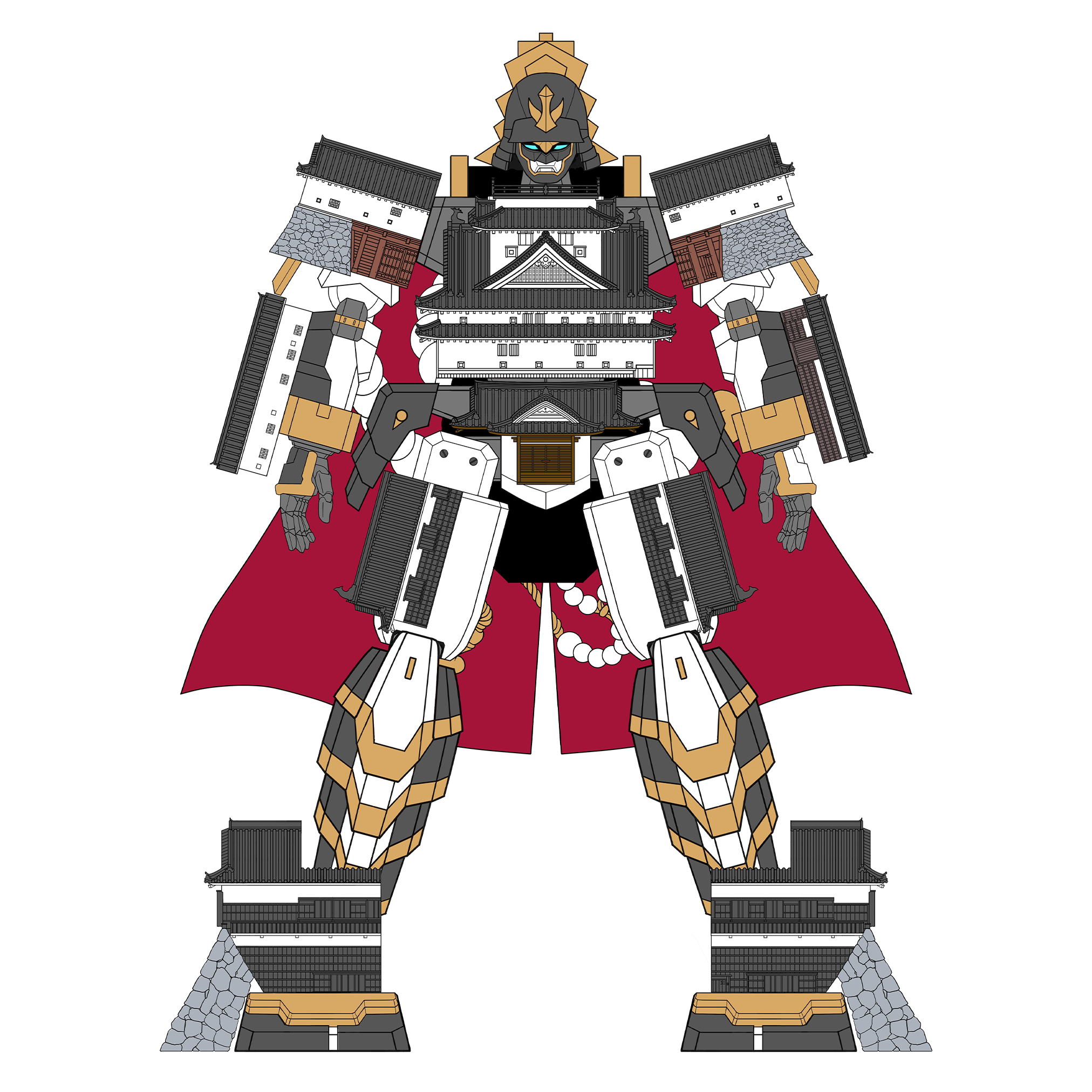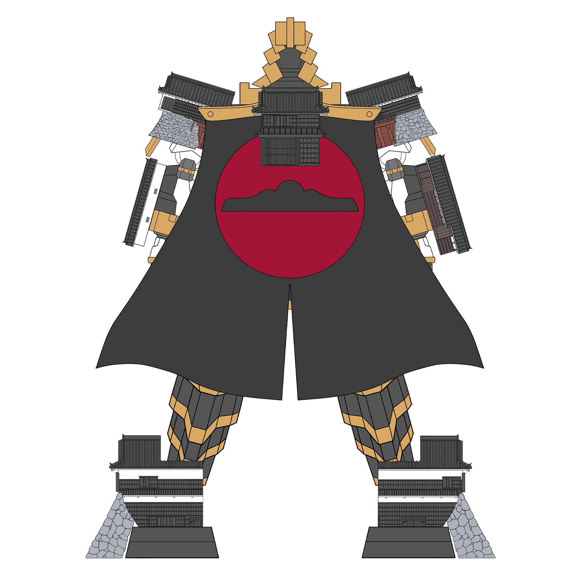 天守と本丸御殿を胴に、現存する櫓と門が全身を構成する。背に纏うマントは、山内家の誇りと矜持の象徴。恐るべきうねりが襲う時、目覚めし南海の巨鯨の咆哮、「酔鯨千波・怒濤撃(すいげいせんぱ・どとうげき)」が全てを飲み砕く。