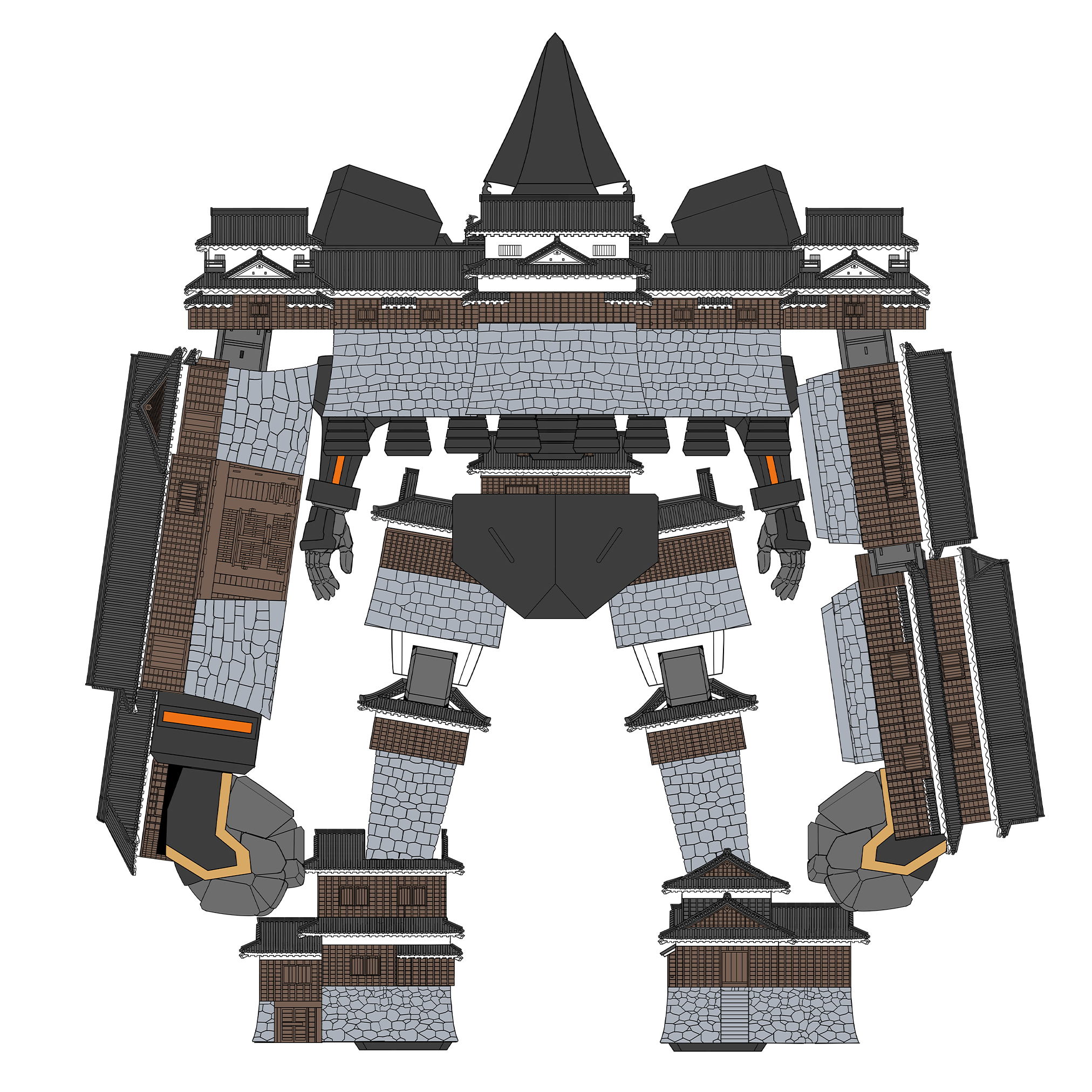 天守の胴を野原櫓の腰が支え、バックパックとして背に負う小天守とつながる隅櫓には、巨大な腕、守りの右・乾櫓と攻めの左・筒井門・隠門が接続する。死角からの巨拳の一撃「幻影剛砕拳(げんえいごうさいけん)」が全てを撃ち砕く。